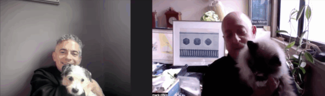 Jack Ferver introduces Nomi to Tuki over Zoom (screenshot by twi-ny/mdr)