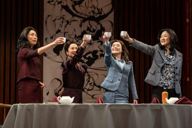 Four businesswomen toast to their success in Alex Lin’s Chinese Republicans (photo by Joan Marcus)