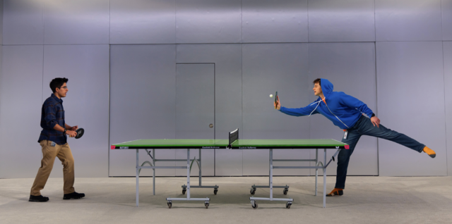 Maneesh (Karan Brar) and Jonah (Brandon Flynn) take a break from work by playing ping-pong in Data (photo by T. Charles Erickson)