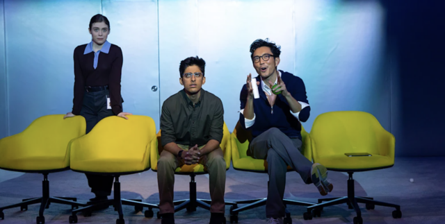 Data premiered in the fall of 2024 at Arena Stage in Washington, DC, directed by Margot Brodelon; director Tyne Rafaeli’s skillful adaptation opened at the Lucille Lortel on January 25 and has been extended through March 29. Karan Brar reprises his role as Maneesh Singh, a twenty-two-year-old Indian American working in the User Experience (UX) department of the fictional, highly prestigious Silicon Valley company Athena Technologies.