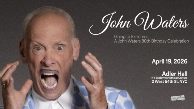 A master of the spoken-word lecture, he has performed such solo shows as This Filthy World, Naked Truth, Make Trouble, and A John Waters Christmas. His latest, Going to Extremes: A John Waters 80th Birthday Celebration, comes to the Society for Ethical Culture on April 19.