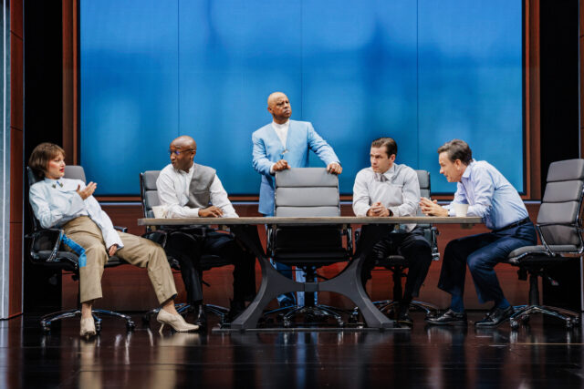 The play is based on two short stories from Hanks’s 2017 collection Uncommon Type, “The Past Is Important to Us” and “Go See Costas,” but Tony-winning director Kenny Leon (Topdog/Underdog, Home) can’t quite merge them on Derek McLane’s ever-shifting set, which switches from a Bronx kitchen and a Greek diner to a conference room and the fair and features archival projections on more than two dozen pillars. Dede Ayite’s costumes help differentiate the various time periods, but it still feels like multiple stories unsuccessfully merged into one.