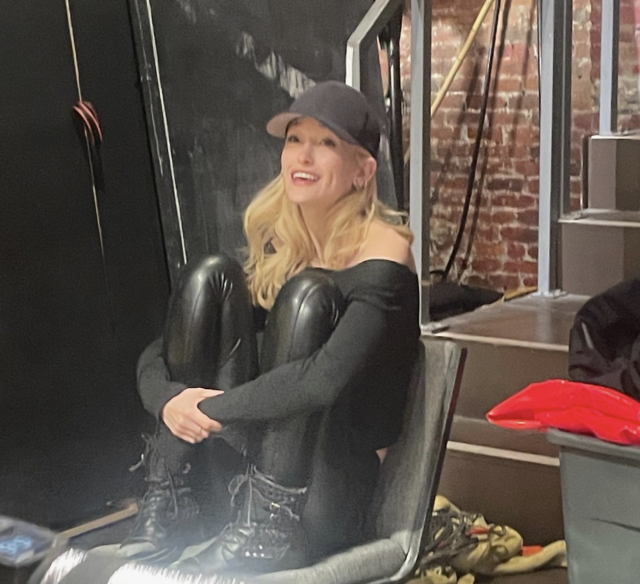 Kon’s mother, Olga (Zuzanna Szadkowski), is a famous Russian actress who is playing Arkadina. Ivan (Quentin Lee Moore) is Treplev, her hapless son who is in love with Nina, portrayed by Masha (Gus Birney, replacing Stella Baker from the La MaMa cast). Poet and playwright Anton (Elan Zafir) is the dramaturg, while Yuri (Burkovskiy), the theater manager, keeps a careful watch on everything. Alexander Shishkin’s set features two dressing tables on either side of the stage in front of a red curtain and a deep open space behind it where the rehearsals are held; many of the props involve creative uses of plastic, from flags to ocean waves to bedspreads.