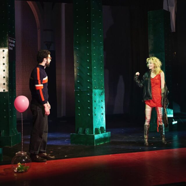 In the second act, Kon arrives virtually penniless in New York, with nowhere to live. He meets aspiring actress Nico (Birney) on the subway and asks his mother’s old friend Barry (Burkovskiy), a producer, for help bringing his adaptation of The Seagull to the city, but first he must helm Barry’s bizarre immersive multimedia production of The Three Little Pigs.
